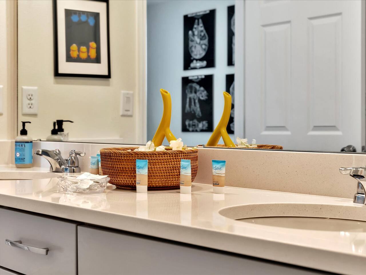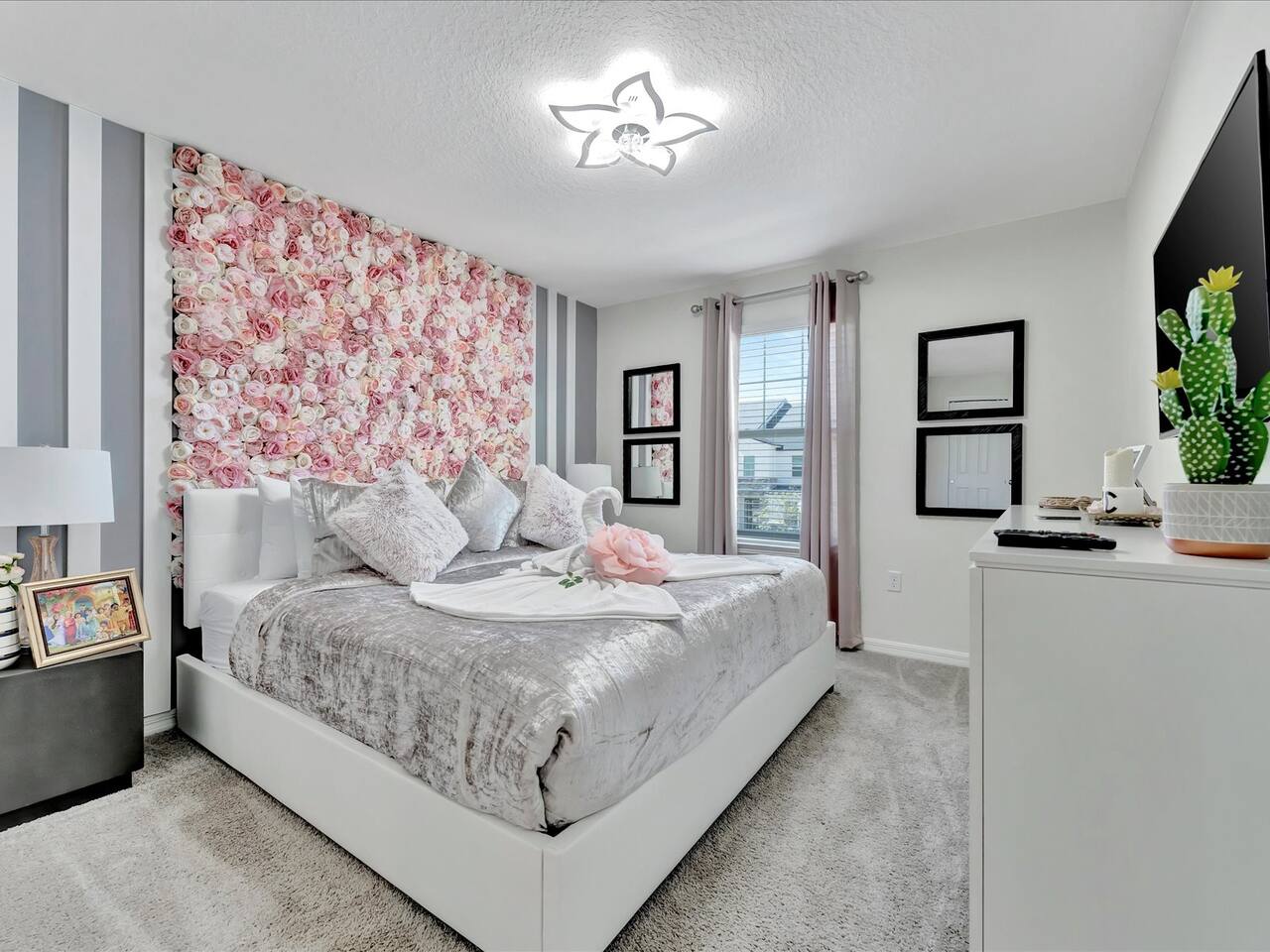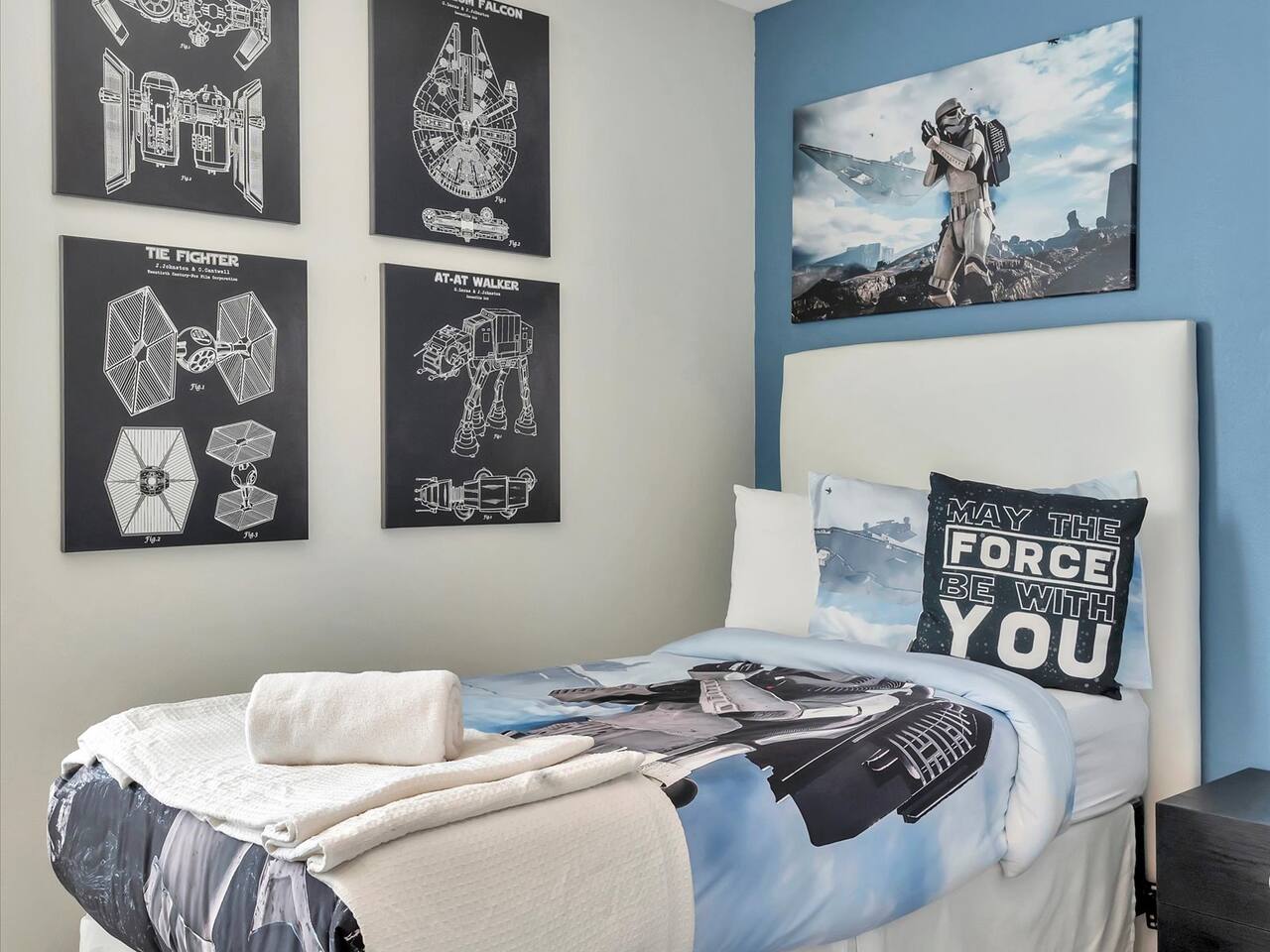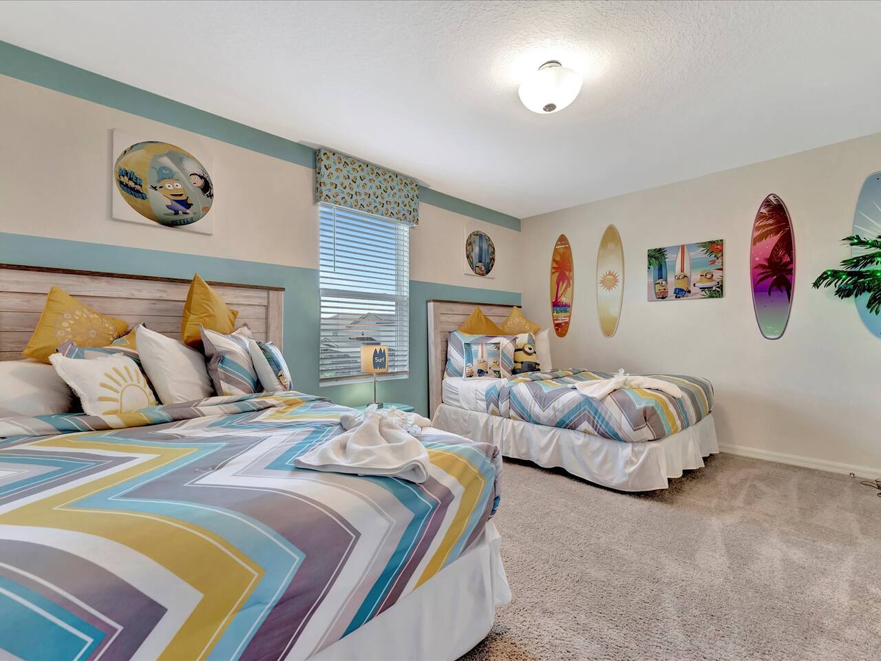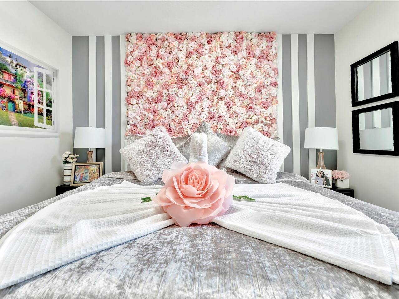 🛏️ Bedrooms: 3 King Suites with plush bedding and smart TVs 4 Themed bedrooms (Frozen & Star Wars) with twin beds and immersive decor. The amazing (SpiderVerse) with 1 Queen bunkbed and 1 twin bunkbed. The Encanto bedroom is a King Suite. 🍿 Entertainment: Private home theater with 120” screen, surround sound, and Guardians of the Galaxy ambiance Mario Game room with 2 large comfortable couches, 2 arcade machines, and console gaming plus board games. 🌴 Outdoor Oasis: Heated pool and spa with resort-style loungers Covered patio with dining area and grill 🏰 Resort Perks: Access to clubhouse, water park, gym, and playground ✨✨✨✨✨ Why Guests Love Us: “Our kids didn’t want to leave the SpiderVerse room!” “The theater was better than going to the movies.” “Everything was spotless, themed, and magical.” 🚫 No pets due to severe allergies 🧼 Starter toiletries provided, please bring extras ⭐ Add us to your Wishlist Book now and create unforgettable memories in a home that feels like a theme park with the comfort of a luxury retreat.